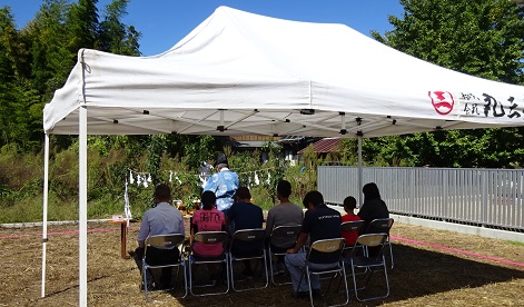 25号 台風が通過中というタイミングしたが、おかげさまで大した影響はなく、長野原でM邸の地鎮祭が無事に行われました。斎藤さんの阿智村のように台風の影響で運動会を取りやめたところもある中、近くのきっと竜丘小学校から運動会のアナウンスが時々聞こえていました。M様のお父様は中国系の方?ですが、神式の地鎮祭には抵抗が無いんですね。郷に入れば・・・ということですね。大きな鯛が気前の良さと意気込みを表しているようでした。おめでとうございました。よろしくお願いします。